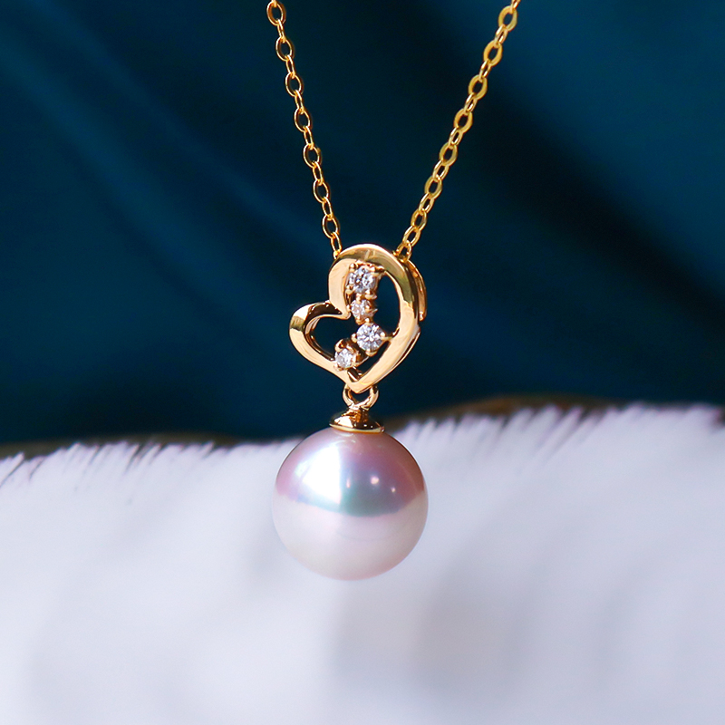 日本akoya珍珠吊墜項(xiàng)鏈18K金單天然海水愛心款正圓項(xiàng)墜