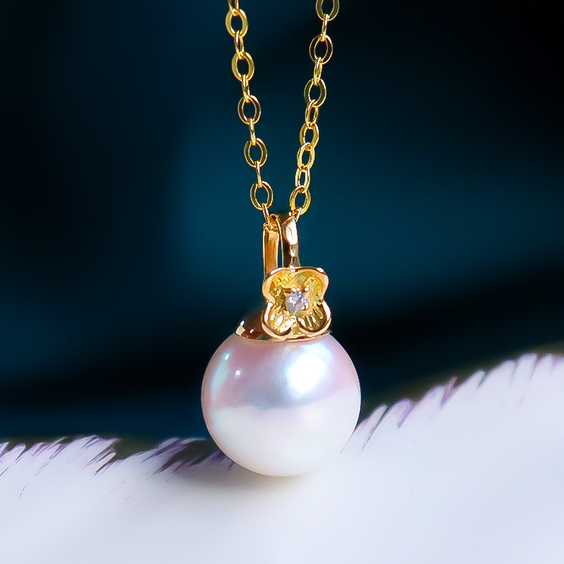 正圓強光Akoya海水珍珠單顆吊墜 18K金鎖骨項鏈時尚單品