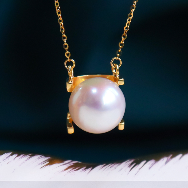 正圓強(qiáng)光Akoya海水珍珠單顆吊墜 18K金鎖骨項鏈時尚單品