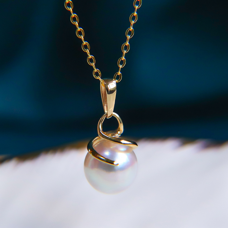 正圓強光Akoya海水珍珠單顆吊墜 18K金鎖骨項鏈時尚單品