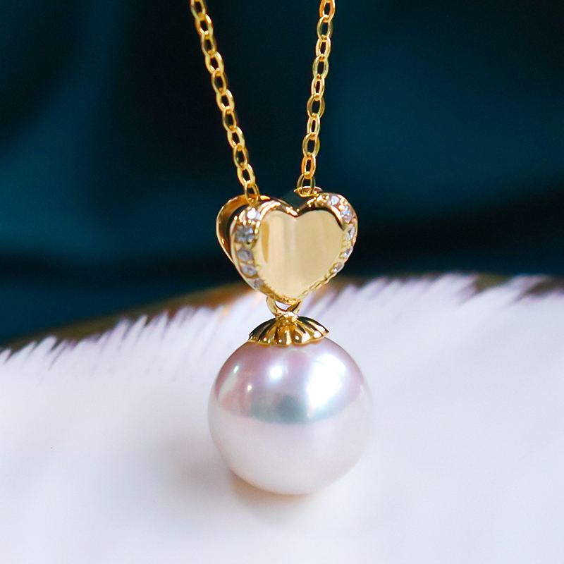 日本akoya珍珠吊墜項(xiàng)鏈18K金單天然海水愛心款正圓項(xiàng)墜